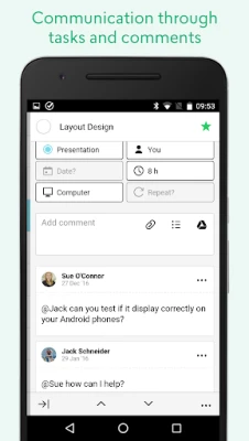 Add comments to each task easily and in any format - text, checklists, photos, documents - use Google Drive as well as any of the popular cloud storage platforms.