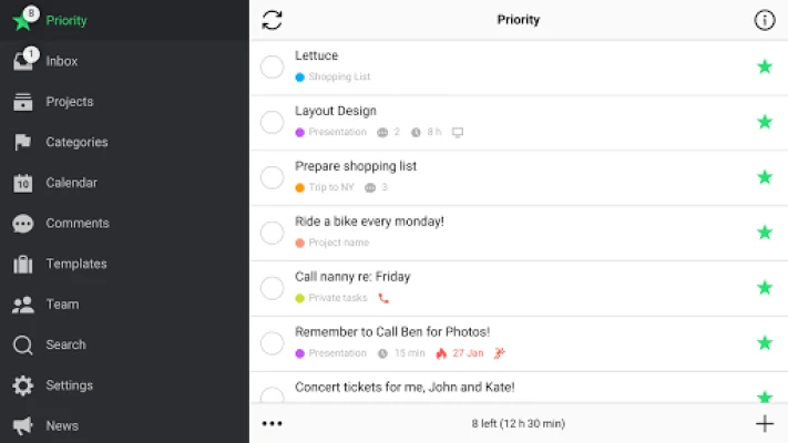 Don't keep things on your mind, put them in your trusted Nozbe Classic system. Add tasks from anywhere, organize them in projects, mark priority tasks with a star and schedule things to do later. Use categories/contexts to batch tasks and get everything done faster.