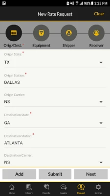 With the NS Rating app, you can: * Perform rate inquiries * Request new rates * View historical rate searches * Favorite searches for easy