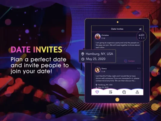 Plan a date and post the date on the app. State the time, address, and what you will do on the date in the post. Other users who are interested in the date can contact you to join.