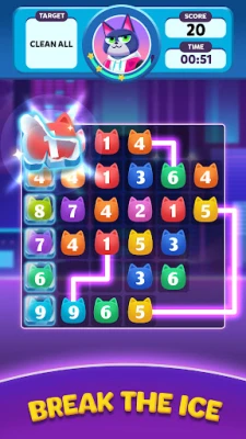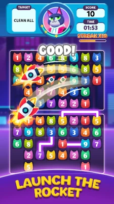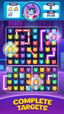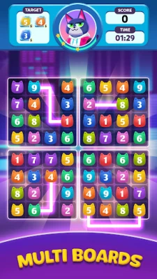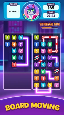 Tap to select a tile. Then, find another tile that adds up to 10 and connect them using no more than 3 lines. Try to visualize a potential path between these tiles. In this classic match puzzle game, you can draw a maximum of three lines connecting at a 90° angle. Utilize your brain and logic!