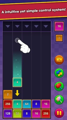 - Place the same number blocks above and next to merge them into larger numbers.
