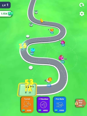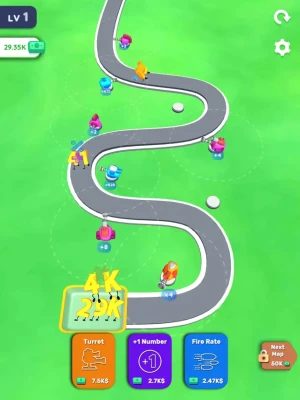 Merge and place your turrets! Increase your numbers! Upgrade yourself and become a millionaire!