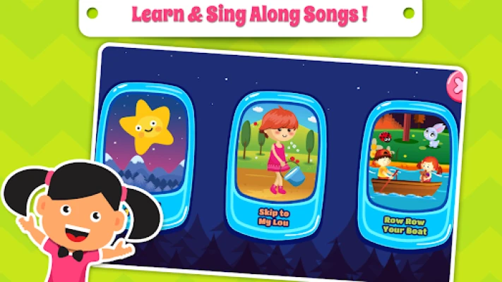 Nursery rhymes for kids interact with the characters onscreen as they learn, play & sing along. Kids & little baby will have fun interacting & touching the animals to hear the sounds. Favourite Nursery rhymes for kids & nursery songs that are included in this free apps for kids - Twinkle Twinkle little Star, Old McDonald Had a farm, Mary had a little lamb, Row Row Row your boat, Tisket Tasket, Skip to my Lou, wheels on the Bus, Alphabet Song