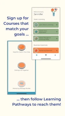 Nurture’s content is divided into five Courses—Explore, Plan, Start-Up, Take Root, and Grow—to deliver relevant information when you need it. In each Course, you follow Learning Pathways. As you take steps along a Pathway, you work toward achieving Milestones, which let you apply what you have learned to your business. In each step, you watch a short video or explore resource and reflect on how the information applies to your business. You earn a Badge for each Learning Pathway that you complete, and a Certificate when you have completed each Course.