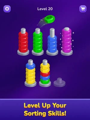 • Intuitive Gameplay: Tap and sort vibrant nuts by color in a series of increasingly challenging puzzles. Only move nuts if they match in color and there’s enough space—simple rules, endless fun.