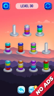 Nut Sort - No Ads: is the free-ads, brain teaser game about nuts and bolts color sort, designed for those who enjoy challenging nuts bolts puzzle. With a simple and fun nuts and bolts color sort gameplay, bolt & nuts sort Games are guaranteed to quickly become your favorite pastime activity!
