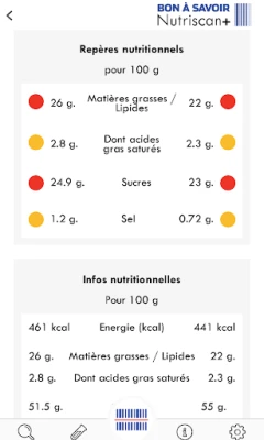 Nutriscan+ permet de visualiser la qualité nutritionnelle d’un aliment préemballé en scannant simplement son code-barres. Cette application a pour objectif de vous aider à manger plus sainement.