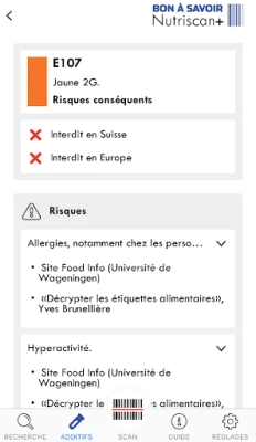 Un achat InApp unique, valable pour la durée de vie de l’application, permet de débloquer les détails concernant chaque additif: risques connus pour la santé, contre-indications en cas de régimes ou d’allergies, usages les plus courants et autorisations de commercialisation en Suisse et dans l’UE. Les informations sont mises à jour par la rédaction de «Bon à Savoir».