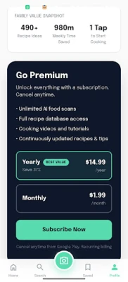 Premium Unlock: Your privacy and experience are our top priority. That is why NutriScan AI is completely ad-free. While basic scanning is free, you can unlock unlimited AI recipe generation and video tutorials with a simple, one-time lifetime purchase. No expensive monthly subscriptions!
