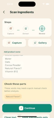 Scan a barcode, capture an ingredient label, or type ingredients manually to get clear food insights fast.
