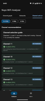 - 🧠 Channel Advisor: Automatic best-channel recommendations (e.g., “Use channel 11”) based on real-time scan data.