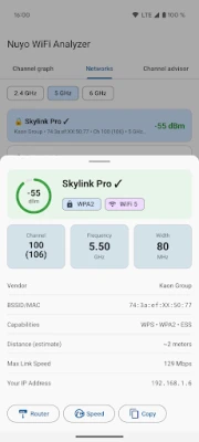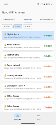 Whether you need a quick Wi-Fi scan to check signal strength, want the best channel for your router, or are exploring 6 GHz / Wi-Fi 6E networks, Nuyo WiFi Analyzer and Scanner gives you the data you need — instantly.