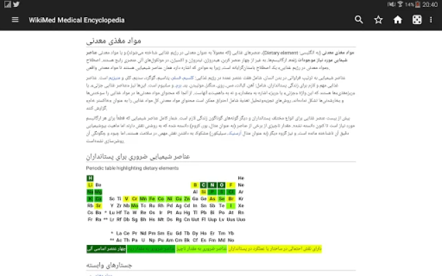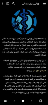 دانشنامه پزشکی آفلاین ویکیپدیا، بزرگترین مجموعه مقالات پزشکی در اندروید است. اگر شما در محیطی هستید که به اینترنت دسترسی ندارید، میتوانید به صورت رایگان از این داشنامه پزشکی استفاده نمایید.