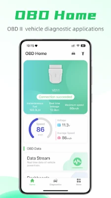 OBD Home is a car diagnostic and monitoring application,support English,Español,Русский,日本語,中文. Through phone, use Bluetooth to communicate with the vehicle terminal to complete fault diagnosis and driving assistance functions. It has automobile detection and analysis functions such as fault code reading and clearing, instrument panel, performance test, and travel analysis. It also supports high-speed data transmission and has the advantages of low power consumption and ultra-power saving.
