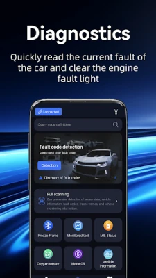 OBDII AI is a car diagnostic and monitoring application for DA200.support English,Español,Русский,日本語,中文. Through phone, use Bluetooth to communicate with the vehicle ECU to complete fault diagnosis and driving assistance functions. It has automobile detection and analysis functions such as fault code reading and clearing,performance test, and travel analysis. It also supports high-speed data transmission and has the advantages of low power consumption and ultra-power saving.