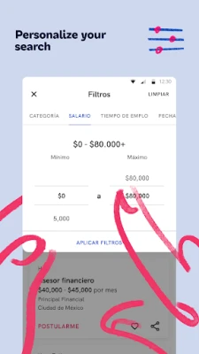 Custom search: Easily find job openings with our filters by salary, location, job role, and more to optimize your search.
