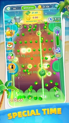 In this game, you just tap to release the balls that fall from the top. When the ball hits the peg or falls into the hole, you get a bonus. The more balls you throw, the bigger the bonus!
