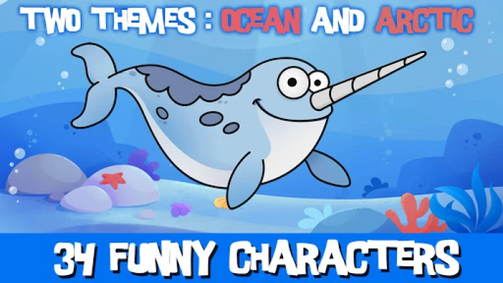 The child will have also fun discovering all the interactive objects of the background and can hear all the sounds of the sea and its inhabitants.