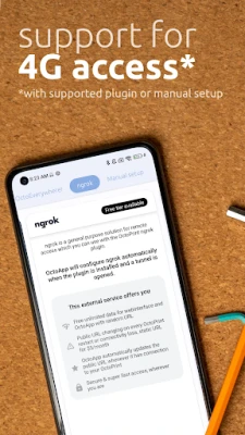 Important notice for remote connections: The app does not provide required servers. You can either set something up yourself and provide the app with a URL reachable over the internet or use a plugin like OctoEverywhere, Obico or ngrok.