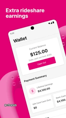 The Octopus Driver App is a quick and easy way for Octopus drivers to access their account and cash out earnings, track progress towards their next payments, update contact information, and more. It’s the mobile application version of the existing driver web dashboard, plus a few exciting new features!