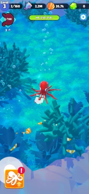 Engage in epic underwater battles: Isolation is not an option in your reef. Different sea creatures plan to challenge your reign, fearing your powerful evolution. Always upgrade your skills, grow your octopus, and catch them all – your mission will be rewarded!
