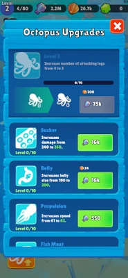 Conquer for eternal evolution: Become the ultimate octopus overlord by capturing each idle fish and evolving. Strengthen your octopus's abilities, attack speed, and catch radius to devour prey more efficiently. Ensure no fish escapes your grasp!
