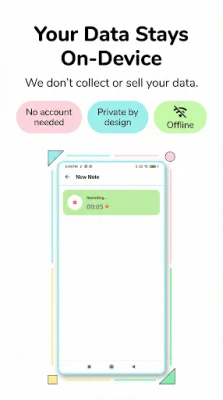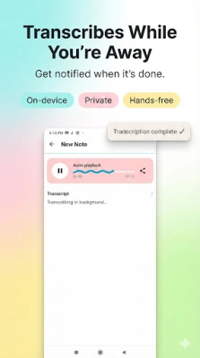 Record a quick voice note, let the app transcribe it on your device, then come back later to read the text or replay the original audio. Transcription can run in the background, so you’re free to leave the app while it works.