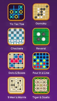 Looking for fun offline puzzle games to play with friends or challenge yourself against the AI? Our offline mini games collection brings together 8 classic board games: Tic Tac Toe, Reversi, Gomoku, Checkers, Dots and Boxes, Four in a Row, 9 Men's Morris and BaghChal. You can play with a friend using pass-and-play or test your skills against 5 levels of AI difficulty, from easy to Expert. Whether you want a quick match or a serious challenge, this app is perfect for players of all ages and skill levels! Sharpen and relax you mind by playing mini games daily.