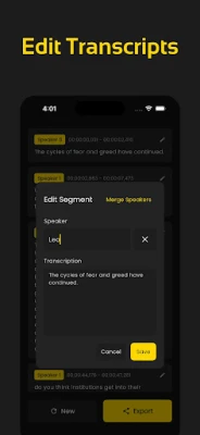 * Edit, merge speakers, export.