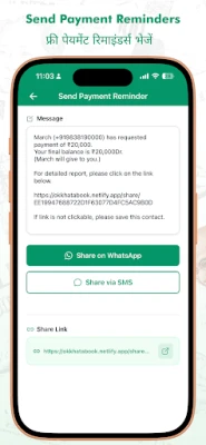 - REMINDER : Send reminders via SMS, WhatsApp, Telegram etc directly from your udhar khaata