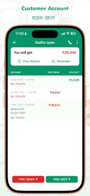 Ok Khata is your digital ledger cash book. It is 100% Free, Safe and Secure and can be used for any type of business to maintain accounts of their customers. Ok Khata works like Tally or Zoho or Busy software for Mobile. Shop owners can best use Ok Khata to record credit and debit transactions of their customers.