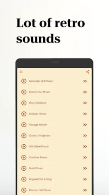Experience nostalgia with a wide range of classic telephone ringtones, perfect for personalizing your phone's sound! Old telephone ringtone application offfers seamless integration: Effortlessly set these ringtones for various notifications and alerts on your device.Listen and preview ringtones before setting them, ensuring you find the perfect sound for your phone. You will have the option to select the sound as a ringtone, notification sound, message tone. In short, it it highly customizable.
