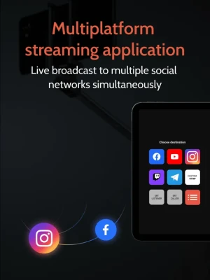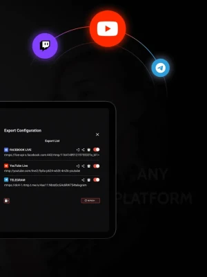 Broadcast in up to UHD quality to Facebook, YouTube, Instagram, Telegram, or any RTMP/SRT-compatible destination. Expand your reach with multiplatform streaming and take control of your content.