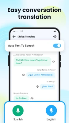 When you need to understand a foreign-language conversation or talk across languages, you can use the voice conversation mode. The interface is simple — just tap to start. The app listens to your voice and converts it to the target language, helping you get clearer communication in face-to-face talks, travel use, business situations, or language practice.