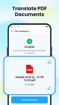 The app includes a built-in document translation tool for PDF files. Import your PDF and the app will analyze it and show the translated content. You don’t need extra software to understand foreign documents. This is helpful for students, office workers, and anyone working with multi-language materials.