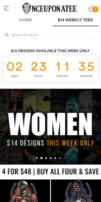 Once Upon a Tee features a new collection of limited edition $14 T-Shirts every week. We have sizes for men, women and children. Our sizes range from S to 6XL. We also have tall sizes!