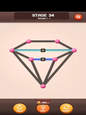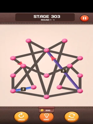 The line between the point and the point can only pass once and all points must be connected.Challenge more complex and diverse connections to clear more stages.