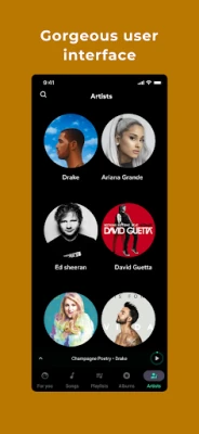 - Browse and play your music by Songs, Albums, Artists, Playlists, Genre