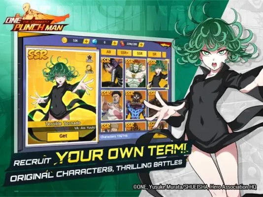 Choose from numerous Heroes and Villains from the original anime. Tons of exclusive items and costumes are also available. Create your own strongest team and lineup!