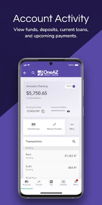 - Transfer Funds Easily between accounts and make payments on your OneAZ loans.