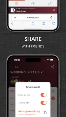 • Online Bill Splitting: Access and manage your expenses online. OneSplit provides online bill splitting features, allowing you and your friends to interact with shared bills directly from any device, anywhere.