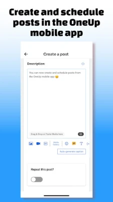 OneUp is a social media management tool that lets you schedule your social media posts to Facebook, Instagram, X, Pinterest, LinkedIn, TikTok, YouTube, Reddit, Bluesky, Snapchat, Threads, and Google Business Profiles.
