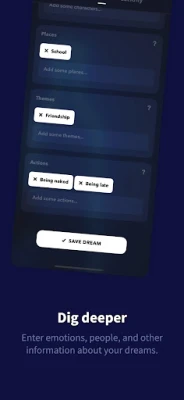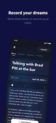 - Get access to the statistics panel and see trends and recurring elements in your dreams