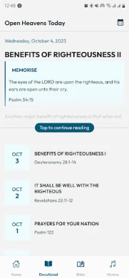 Features :- Audio Devotional Automatic Light & Dark Mode! Daily Open Heavens Review Bible Books Devotional Hymns