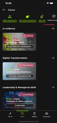 Ma l'apprendimento non si ferma qui! Nella sezione "Esplora", ti invitiamo a immergerti completamente nel nostro ricco catalogo di contenuti. Sfoglia tra caroselli e card pieni di corsi, tutorial e risorse educative che ti ispireranno a esplorare nuove passioni e acquisire nuove competenze.