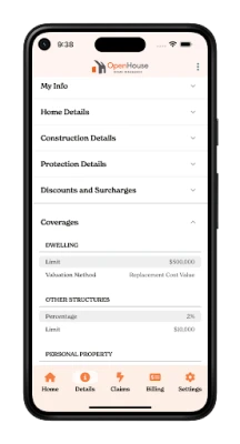 • View your deductibles and all your current coverages on your OpenHouse policy, all in one place.