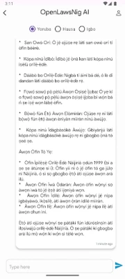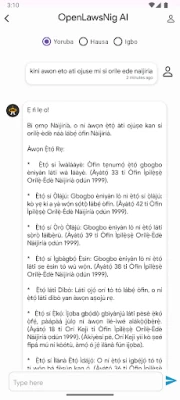 OpenLawsNig is an AI-powered legal assistant app designed to promote access to justice by providing easy access to legal information and laws in Nigeria. The app also aims to educate Nigerians on their rights and obligations under the law, thereby promoting civic engagement.