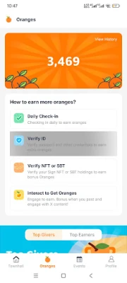 Engage with posts and people to earn Oranges, a digital point that represents engagement in the app, a reflection of your activity and reputation in the app.