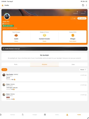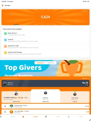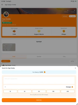 Engage with posts and people to earn Oranges, a digital point that represents engagement in the app, a reflection of your activity and reputation in the app.